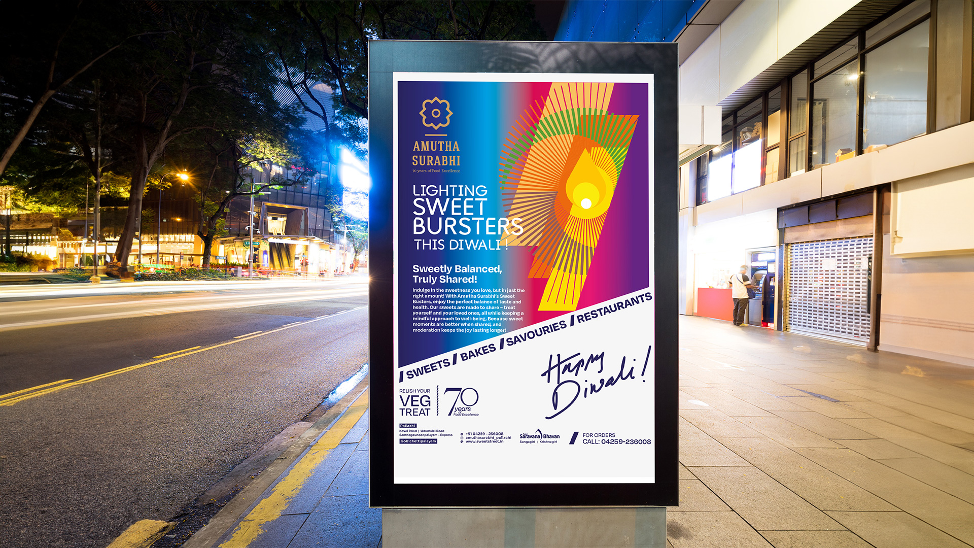 By translating flavours into forms and stories into visuals, Signatures1 helped Amutha Surabhi become more than just a sweet store-it became an experience. This project reaffirms our strength in building cohesive, emotionally resonant, and future-ready brand ecosystems.